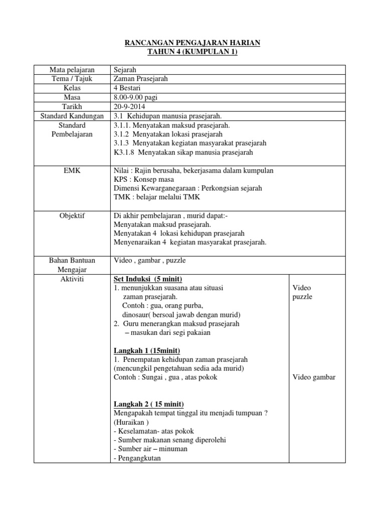 Contoh Rph Sejarah Tahun 5 Ver 1 Pdf
